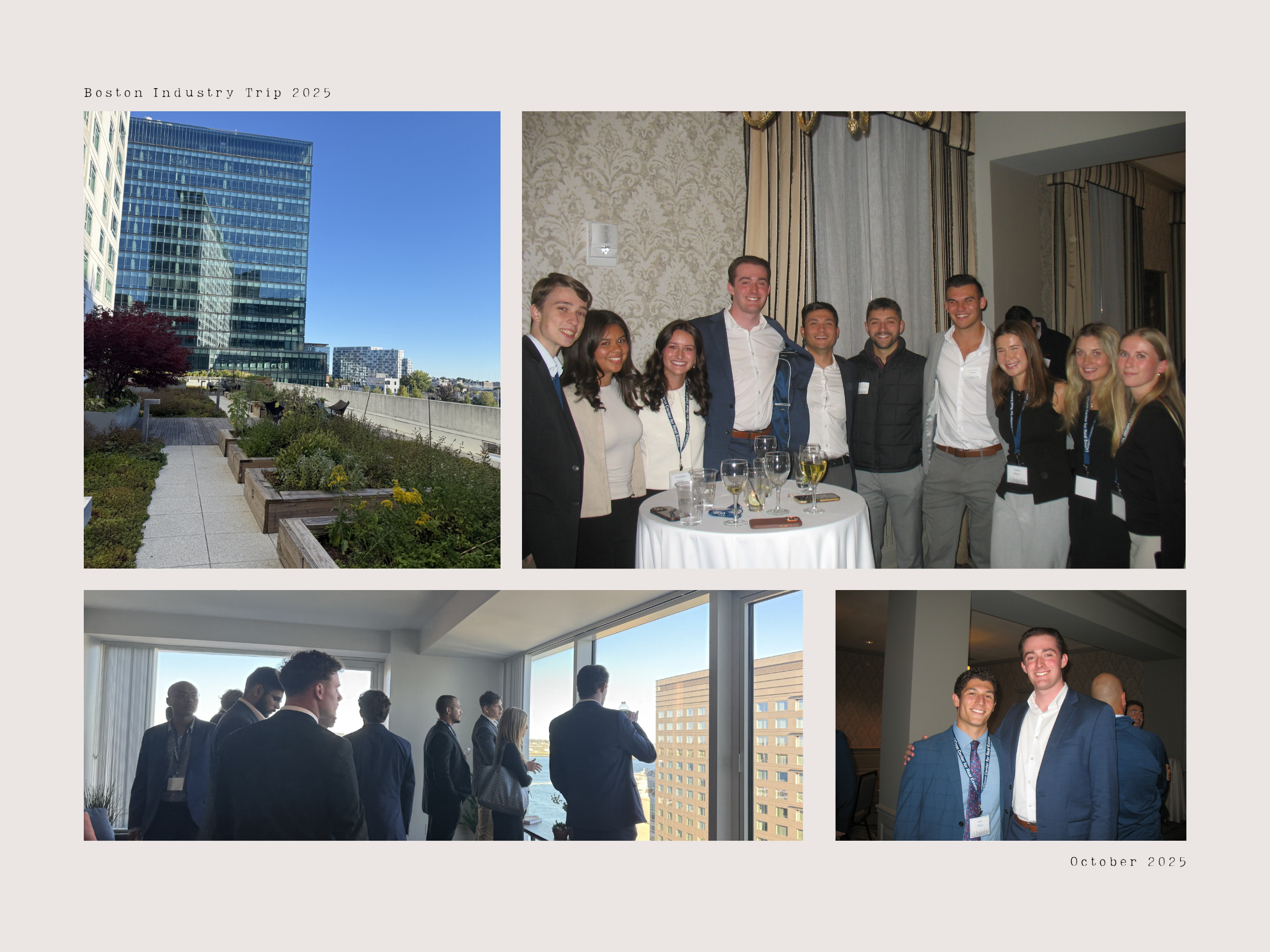 In October of 2025, students and faculty took an overnight trip to Boston where they spent two days touring companies in the area, including Cabot Properties, GID & TA Realty. In the evening, the Center hosted their "Bridging Boston Reception", where students, faculty, alumni, and industry friends all gathered to network and make connections. This trip gave students a deeper understanding of the Boston real estate market, and strategies employed by industry leaders.